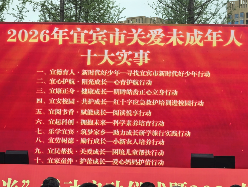 启动仪式上同步发布的2026年宜宾市关爱未成年人十大实事,则涵盖思想引领、心理健康、校园安全、科创培育、研学实践、困境帮扶等多项内容,具体包括:寻找宜宾市新时代好少年行动、心育护航行动、明眸皓齿正心立身行动、红十字应急救护培训进校园行动、阅读悦享行动、科学素养培育行动、助力成长研学旅行实践行动、小新农人培养行动、困境儿童帮扶行动、爱心妈妈护蕾行动,以实打实的举措为未成年人成长保驾护航。
