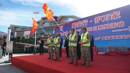 活动当天,主会场巴塘县中山广场的活动内容丰富、精彩纷呈,现场不仅为“流动防火宣讲队”“防火网格巡护员”举行了队旗与臂章授予仪式,还通过图文并茂的展板、生动鲜活的短视频,集中展示巴塘县及周边地区森林、草原火灾典型案例,深入剖析火灾成因与危害。现场同步设置装备科普区、应急包DIY 区、专项技能实操培训区,消防救援队员与林草工作人员现场演示风力灭火机、高压水枪等装备使用方法,细致指导群众配置应急包,教授灭火器操作、火场逃生等实用技能,真正让群众 “学得会、用得上”。