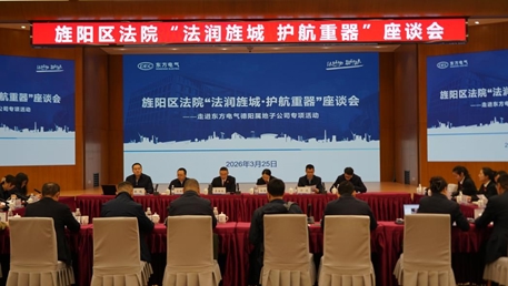 近日,德阳市旌阳区法院走进东方电气集团东方电机有限公司,举行“法润旌城·护航重器”专项活动,与东方电机、东方汽轮机、东方锅炉、东方风电四家央企德阳属地子公司深化司法协同,以全链条司法保障助力德阳装备制造产业提质升级。
