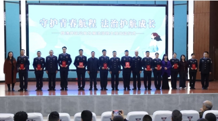 仪式上宣读了《关于聘任高原等96名同志为法治班主任的决定》,为96名法治班主任逐一颁发了聘书,并为法治班主任授旗,正式明确民警校园法治教育、安全管理等核心职责,标志着自流井区“法治班主任”制度落地实施。