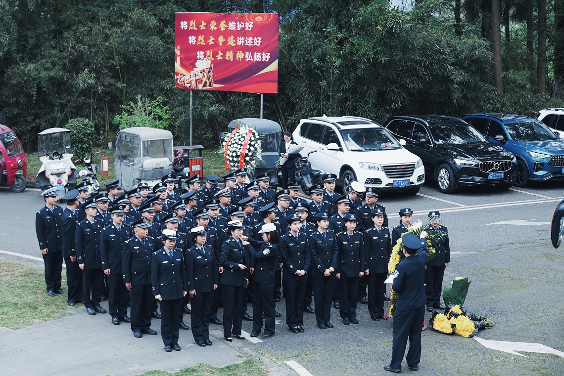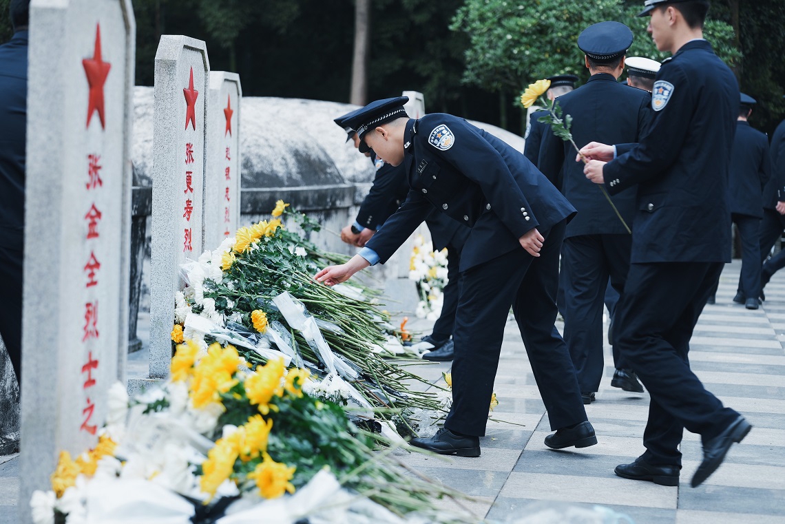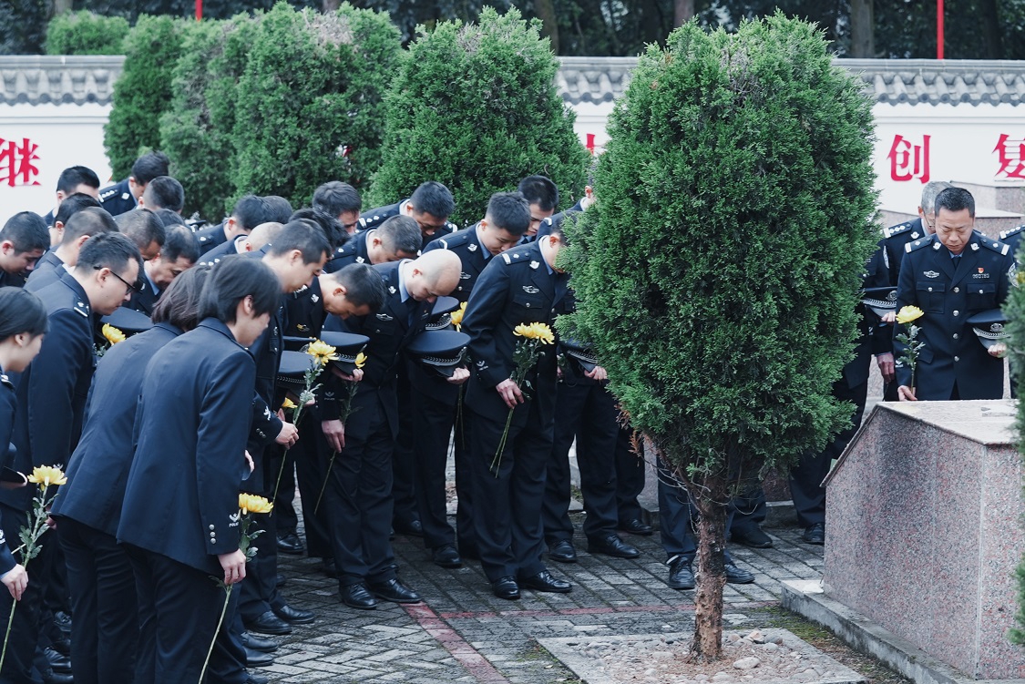 聆听着战友的英勇事迹,凝视着墓碑上年轻而坚定的面容,在场民辅警无不动容。大家整齐列队,向符从军烈士墓深深鞠躬,并依次献上鲜花。新入职民警代表表示:“符从军烈士用生命诠释了忠诚与担当,作为新时代公安民警,我们一定要继承英烈遗志,练就过硬本领,守护好来之不易的平安。”