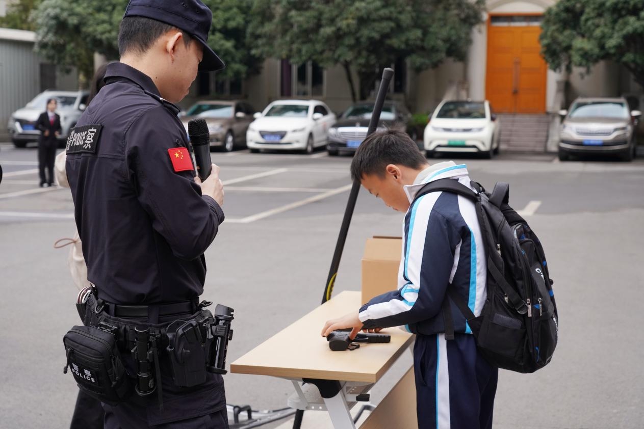 刚踏入法院,同学们就被法警提前准备好的各种警用装备勾起了兴趣。警用手铐、伸缩警棍、防暴盾牌等装备依次亮相,法警一边展示一边为同学们详细讲解各类装备用途、使用规范和安全知识,还邀请同学上前“挑战”组装手枪。同学们认真聆听、积极提问,近距离感受司法警察的严谨作风与责任担当。