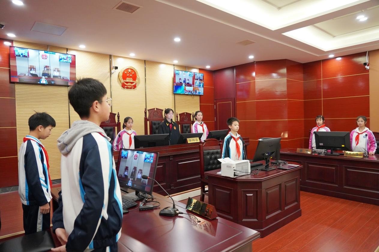 活动尾声,一场贴近校园生活的法治普法小课堂开讲,法官围绕未成年人保护、预防校园欺凌、日常行为规范等内容,摒弃枯燥的理论说教,结合鲜活典型的校园案例、趣味互动的提问环节,把晦涩的法律条文转化为孩子们听得懂、记得住、用得上的通俗语言,耐心引导大家认清违法违规行为的危害,学会运用法律武器维护自身合法权益。同学们踊跃举手、争先作答,在互动中学习法律常识、强化法治意识,现场气氛十分热烈。