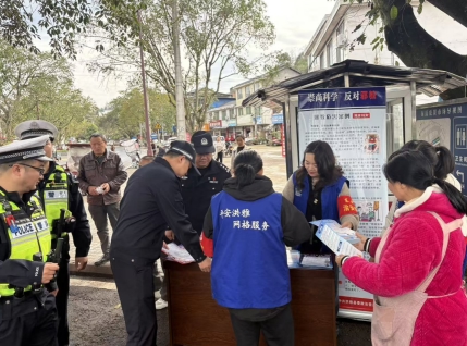 为深入推进平安洪雅建设,切实提升辖区群众禁毒、电信反诈、防范养老诈骗、反邪教意识与能力,近日,洪雅县东岳镇综治中心联合派出所以场镇赶集日为契机,在人流密集区域开展“四防”集中宣传活动,全方位筑牢基层安全防护屏障 。