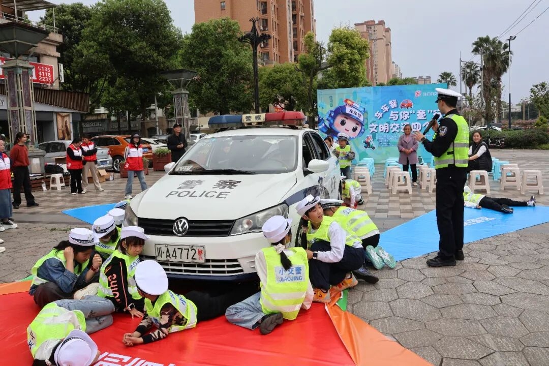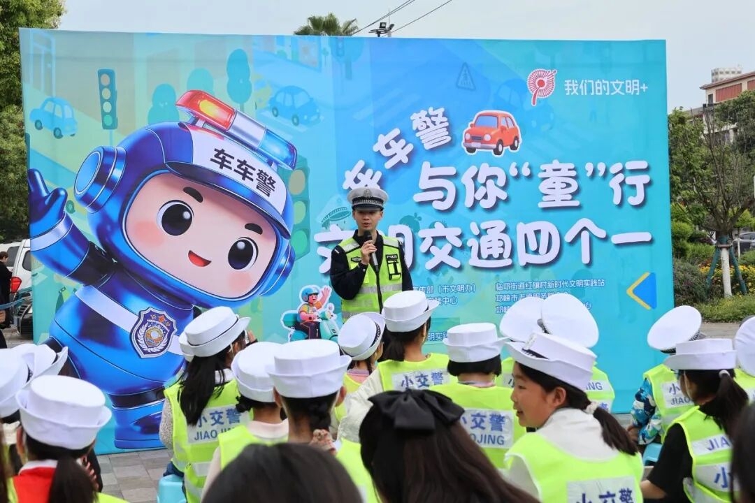 为深化文明城市建设,强化儿童交通安全宣传教育,提升家庭出行安全意识和文明素养,针对清明春假期间儿童出行频次高、安全防护意识薄弱等特点,4月2日下午,邛崃市公安局交管大队联合市文明办、市新时代文明实践中心,在文君街道玉带街与凤凰大道路口开展“车车警与你‘童’行·文明交通四个一”主题活动。40组亲子家庭近距离体验了一堂生动的交通安全课,共同筑牢道路交通安全防线。