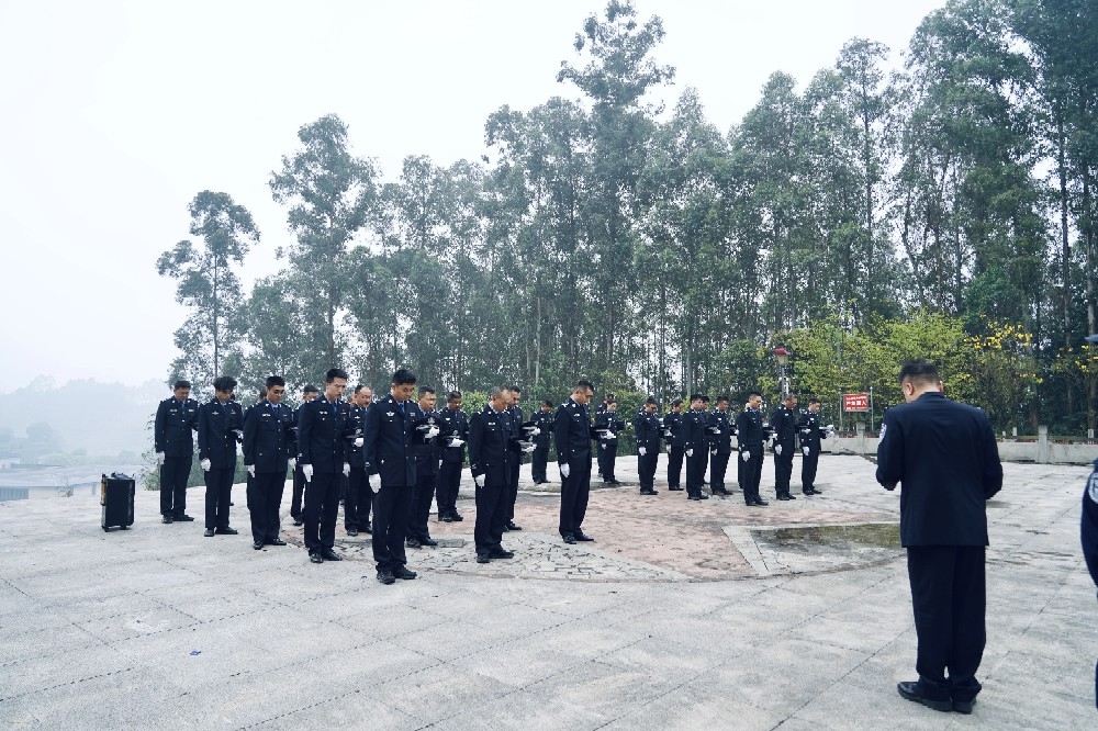 青神县烈士陵园内,青松傲立,翠柏挺拔。民辅警代表整齐列队,向英烈纪念碑敬献花篮、整理缎带,全体人员肃立默哀,深切缅怀英烈们为国家安宁、人民幸福作出的不朽牺牲。