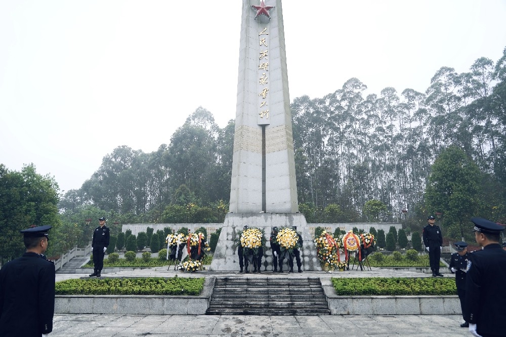 《献花曲》缓缓奏响,4名礼兵迈着庄重的礼步,郑重地向英烈敬献花篮。全体民警行注目礼,向不朽的烈士英魂致以最崇高的敬意。