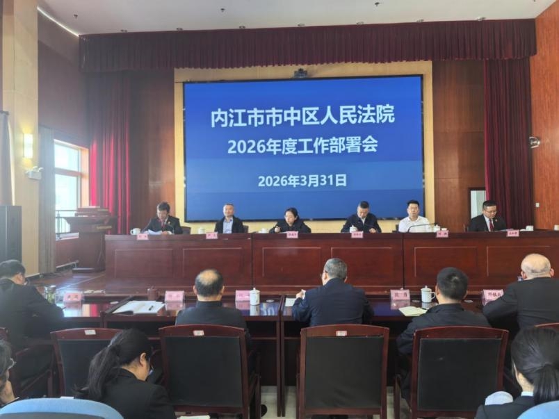 近日,内江市中区法院召开2026年度工作部署会,贯彻落实中央、省委、市委政法工作会议和全国高级法院院长会议、全省中级法院院长会议、全市法院院长会议精神,全面总结2025年全院工作,谋划部署2026年工作任务。