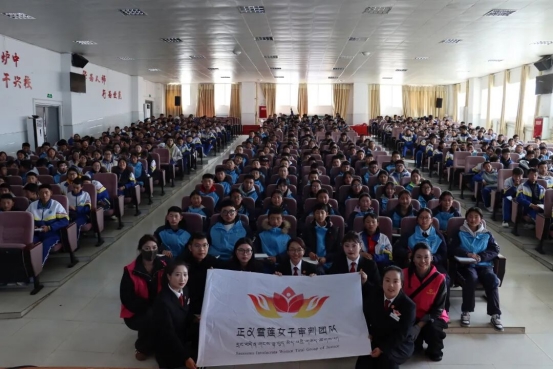 从雪山脚下的乡村,到县城的中心校,正义雪莲的身影无处不在。这一路,不仅是普法,更是守护。雪莲法官不仅关注孩子的法律意识,更关注他们的身心健康。活动还特别邀请了县共青团委与县妇联,她们化身为“临时妈妈”和“心理辅导员”,与留守儿童结对子,赠送学习用品,疏导心理问题,将司法关怀延伸到课堂之外。