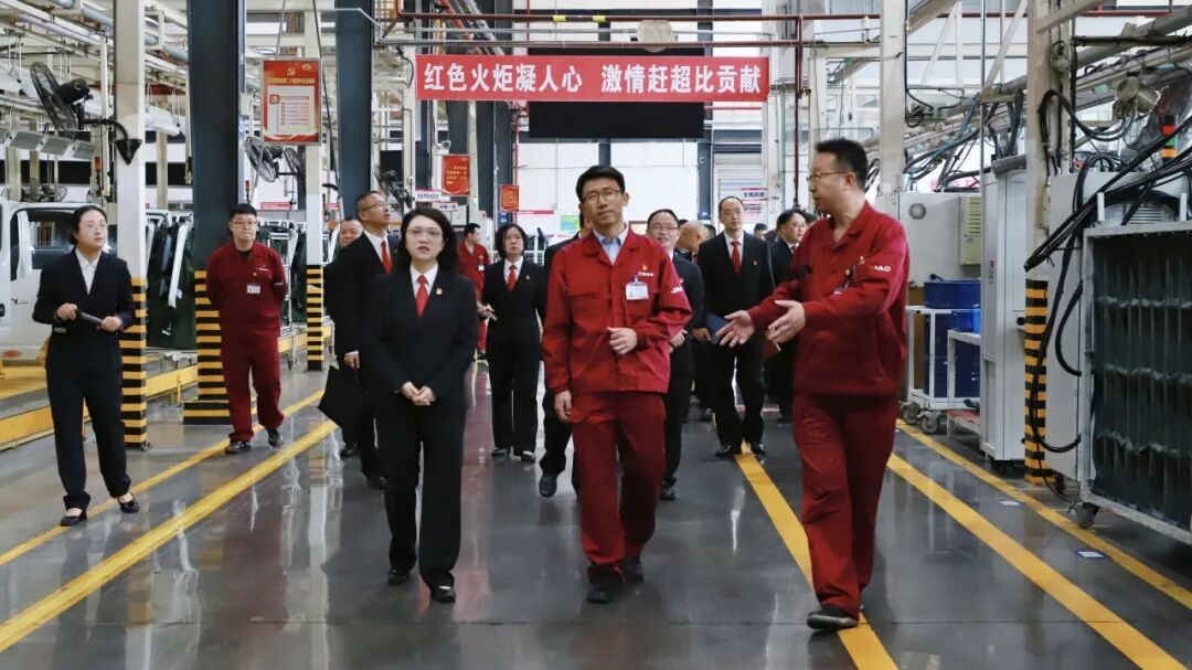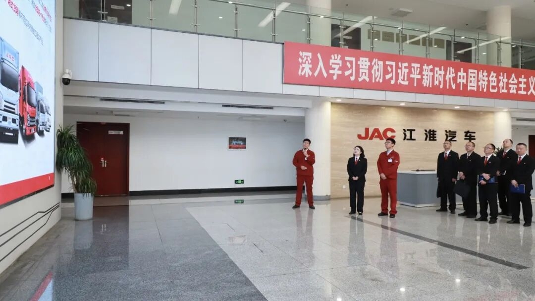 在企业负责人引导下,安居区法院干警先后走进企业展厅与总装车间,开启一场“沉浸式”研学。展厅内,大屏PPT以图文并茂的形式,用一张张老照片、一组组新数据,勾勒出江淮扎根安居、从无到有的奋斗年轮。