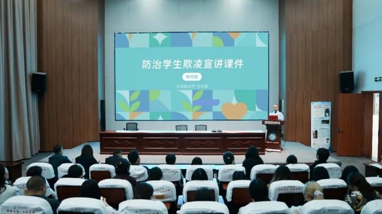 为严防校园欺凌,压实校园安全责任,提升教职工识别、干预、处置校园欺凌的能力,4月13日,成都市公安局新津区分局宝墩派出所民警走进新津区职业高级中学,为全校教职工开展反欺凌法治专题培训。
