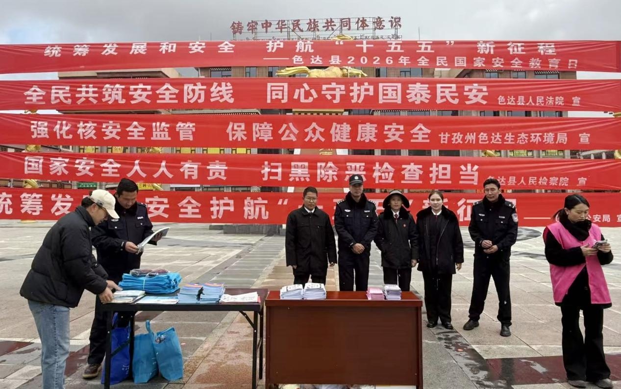 在第11个全民国家安全教育日来临之际,色达县法院紧扣“统筹发展和安全 护航‘十五五’新征程”主题,在金马广场集中开展国家安全法治宣传教育活动,将国家安全法律知识送到高原牧区群众身边。