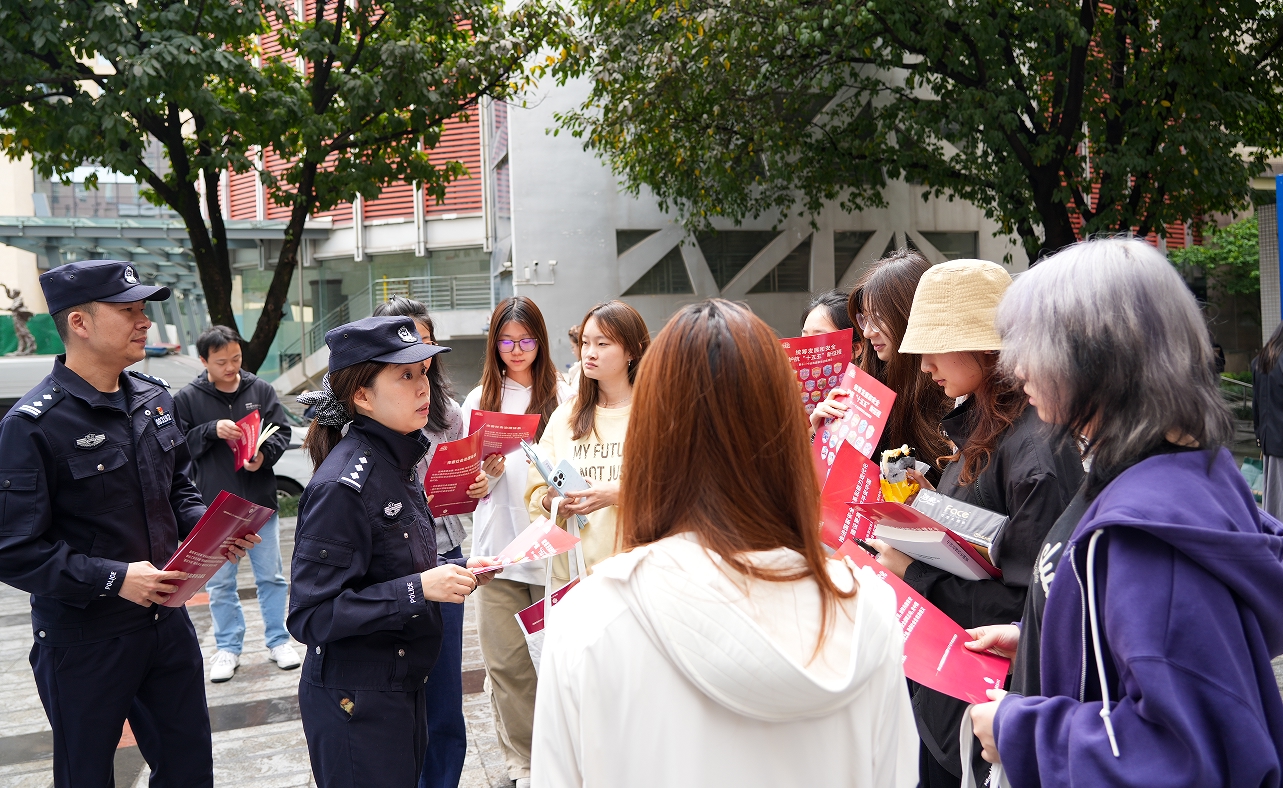 除集中宣讲和互动活动外,民警结合院校学子的专业特点,针对“出国演出交流、艺术作品创作、网络平台使用”等高频场景,开展针对性安全提醒与法治辅导,同步发放精心设计的宣传海报、安全提示卡等宣传品,将安全知识精准传递到每一位学子手中。