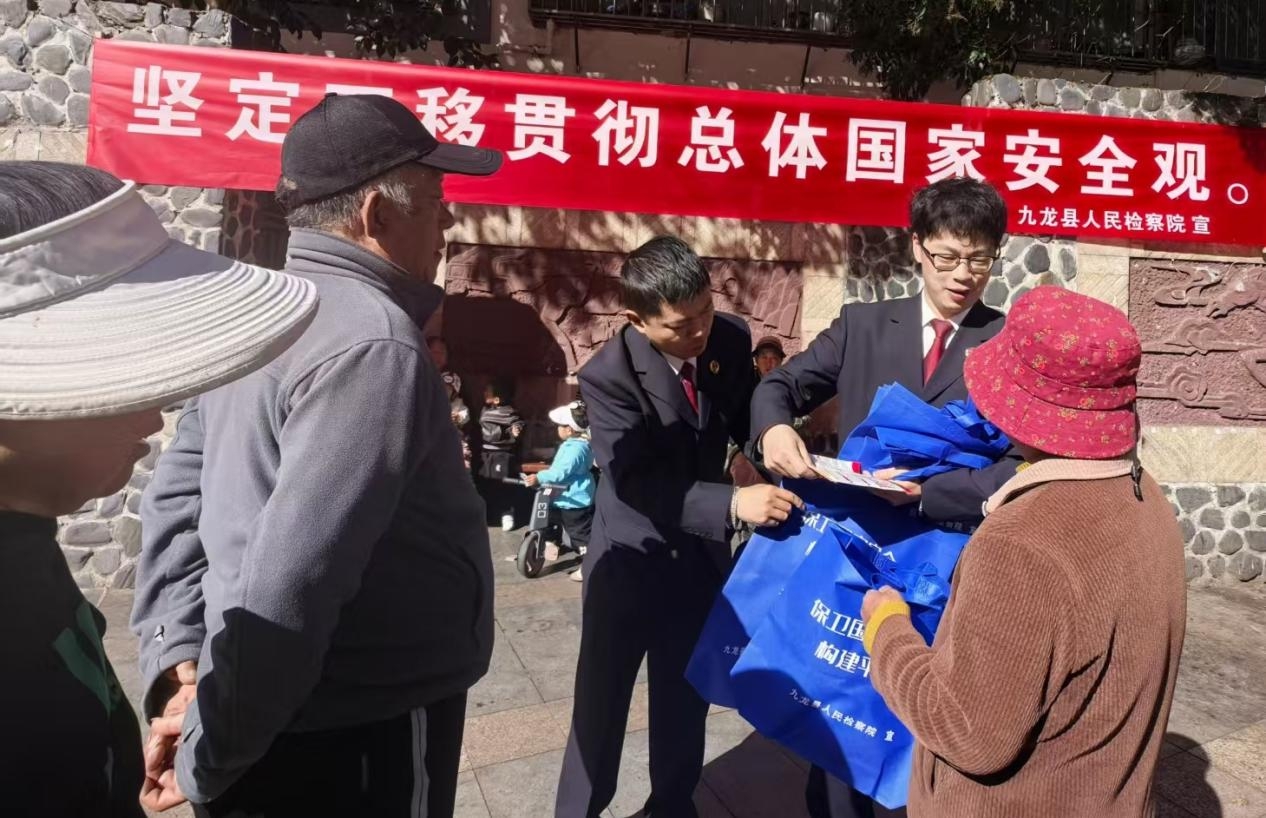 4月15日是全国第十一个全民国家安全教育日,为进一步提升群众的国家安全意识和法治意识,营造“国家安全,人人有责”的良好社会氛围,九龙县检察院在九龙县民族广场开展了全民国家安全教育日暨“国家安全宣传教育月”集中普法宣传活动。