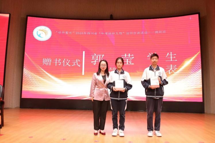 为深入学习宣传贯彻习近平法治思想,充分发挥法治先进典型示范引领作用,持续深化青少年法治宣传教育,4月17日,按照司法厅统一安排部署,“法治蜀光”2026年四川省“年度法治人物”绵阳站宣讲活动在绵阳南山中学成功举办。司法厅普法与依法治理处、省人大办公厅离退处相关领导到场指导,市直相关单位、各县(市、区)司法局相关负责同志、法治副校长代表及南山中学师生共400余人参加。