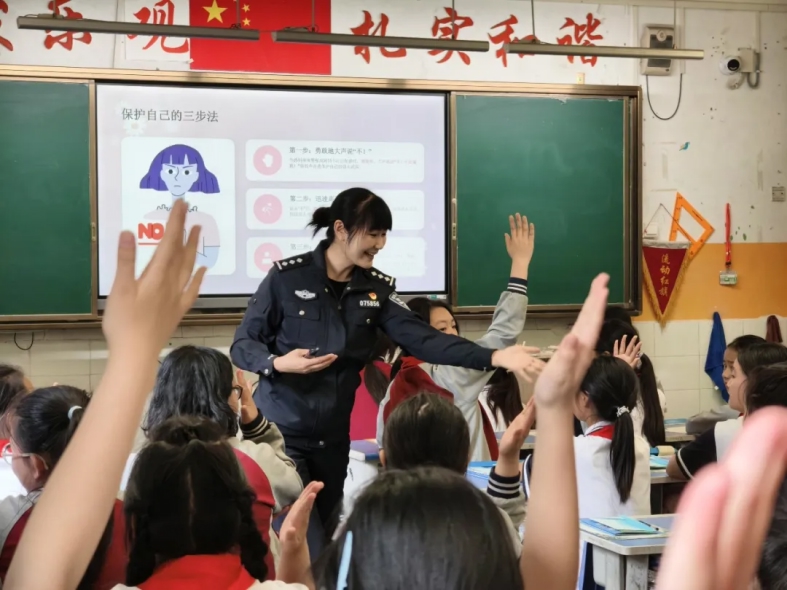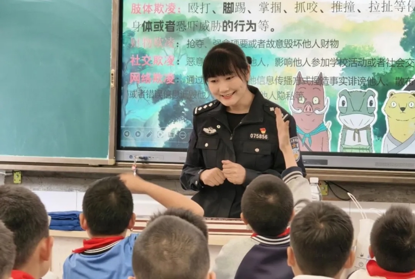 民警杨天翠作为全市首家社区警校——天翠护苗工作室新任“法治班主任”,以互动式教学开展宣讲。课堂上,她不讲大道理、不念法条,用自拍泄露信息、校园欺凌界定、新型毒品辨别等学生日常场景,引导大家思考国家安全、网络安全、校园欺凌等问题,让课堂如同互动游戏。