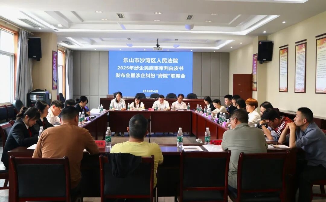 近日,乐山市沙湾区人民法院在沙湾区经济开发区管委会,正式召开乐山市沙湾区人民法院2025年涉企民商事审判白皮书发布会暨沙湾区涉企纠纷“府院”联席会。沙湾区委政法委、经开区管委会、区发改局、区经信局、区住建局、区人社局、区总工会、区工商联等部门及辖区企业代表应邀参会。