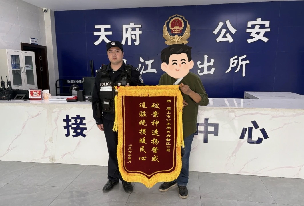 “要不是你们争分夺秒,我这20多万血汗钱就全没了!”4月17日,杨女士家属将印有“破案神速扬警威 追赃挽损暖民心”的锦旗送到眉山市公安局天府新区分局锦江派出所,对民警高效办案,成功挽损表示衷心感谢。