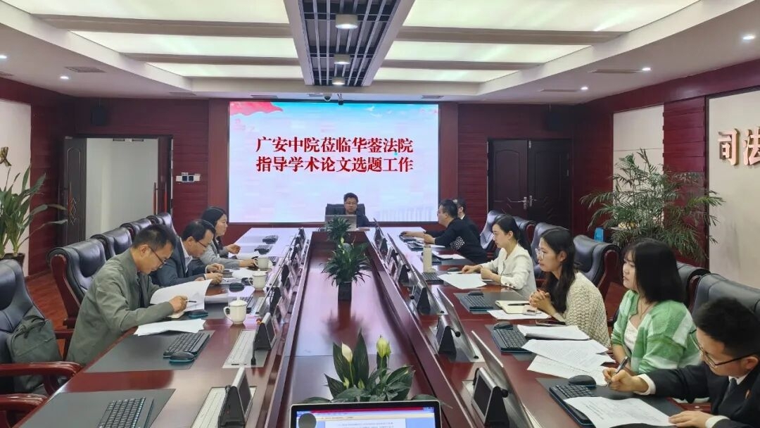 4月16日上午,广安中院研究室主任戴建军一行赴华蓥市法院,就学术论文选题工作开展专题指导,并对2026年度研究条线重点工作任务进行了部署。华蓥市法院党组成员、副院长罗丹及全院各审执业务部门、综合部门调研骨干参加了会议。