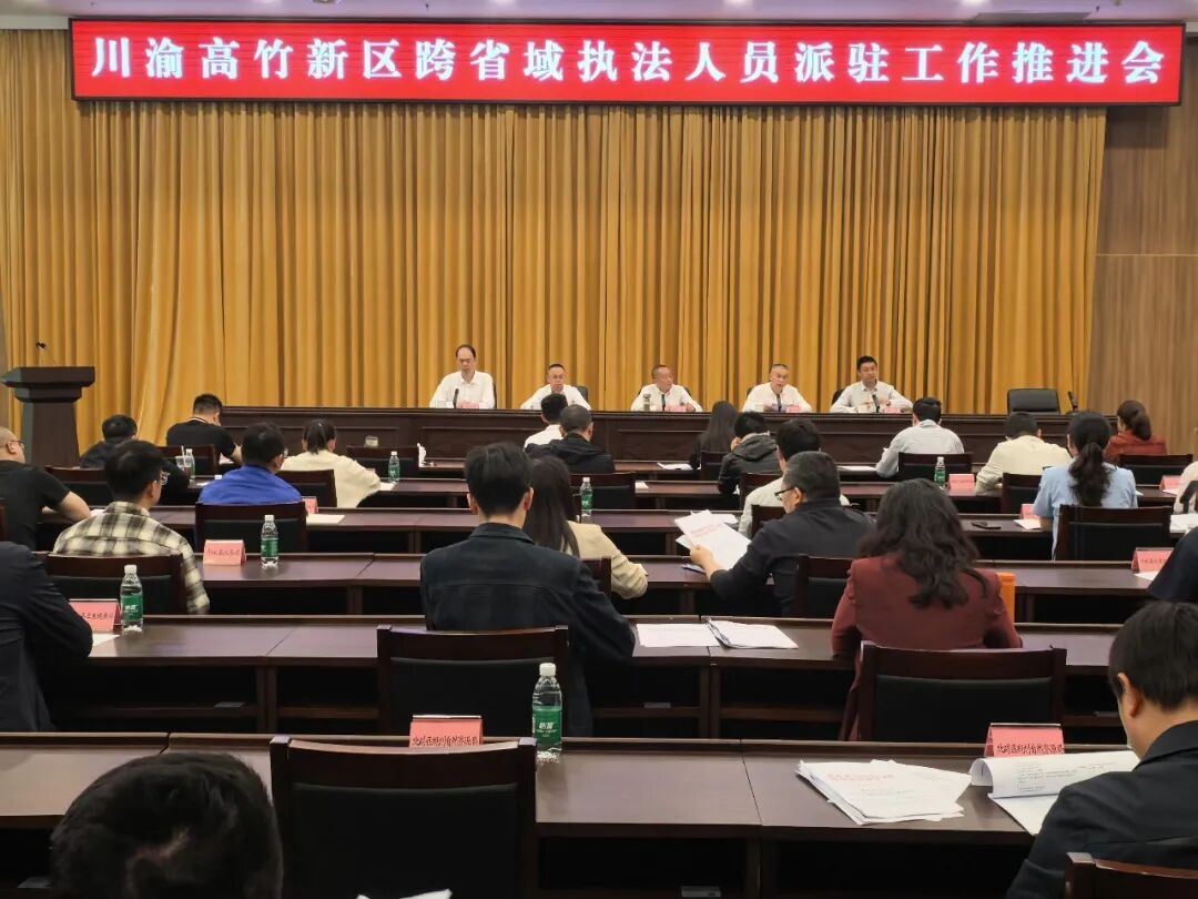 4月23日,川渝高竹新区跨省域执法人员派驻工作推进会在川渝高竹新区管委会召开。重庆市北碚区司法局、广安市司法局、邻水县司法局、川渝高竹新区管委会及北碚、邻水两地派驻执法部门相关负责人和派驻执法人员参加会议,共同研究跨省域执法人员派驻工作,推动“一支队伍管执法”在川渝高竹新区落地见效。