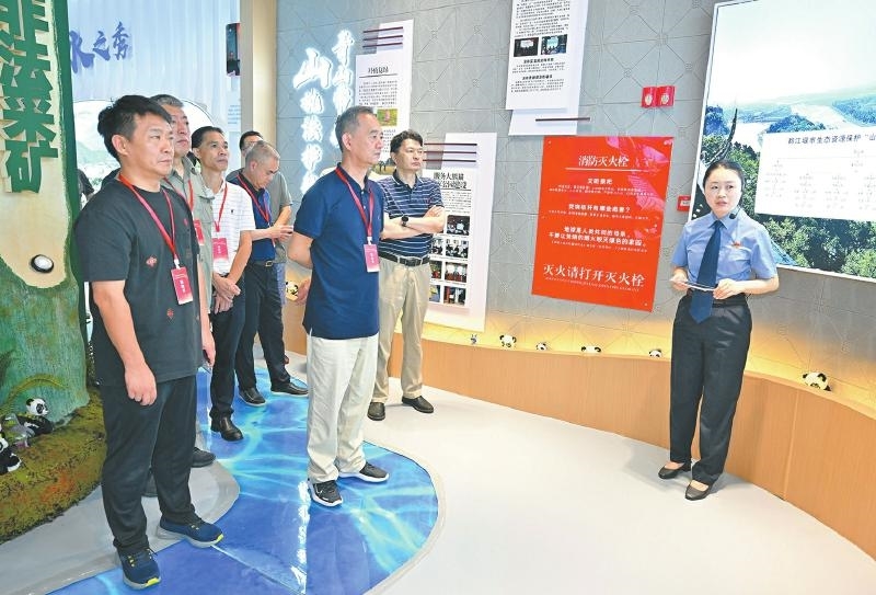 19日,全国法治(制)媒体川渝采访行记者团来到四川省都江堰市的“堰水清清”生态环境保护宣传警示教育基地采访。