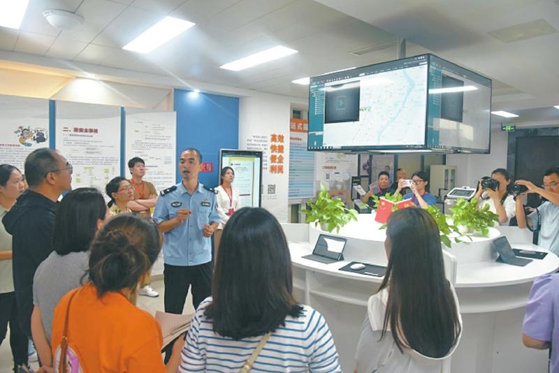 在参观到社区立体云防控平台时,该平台引起了大家浓厚的兴趣,据汪慧介绍,社区立体云防控平台接入136路高清视频监控,新建5只“鹰眼”高点位监控,优选23个关键卡口、重点场所点位安装AI智能摄像头,日均感知数据达5000条,多元采集、研判基础信息数据,实时掌握辖区人员行动轨迹,及时预判各类风险苗头,为矛盾纠纷化解提供数据支撑。“之前东坡水街人员较多的时候,系统多次帮助游客查找走失的小孩和老人,最快的一次找人仅用了30分钟。社区利用该系统最大化拓展服务空间和时间。”汪慧向记者团介绍道。