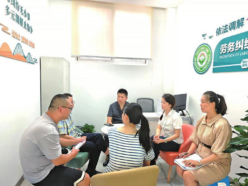 综治中心调解团队正在调解劳务纠纷 成都市郫都区委政法委供图