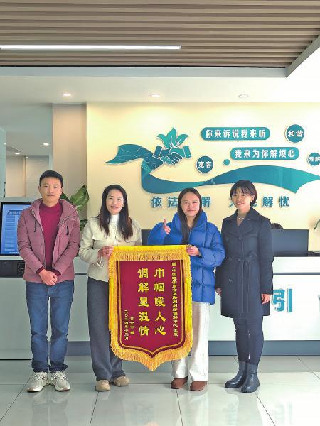 群众向综治中心金融领域调解团队赠送锦旗