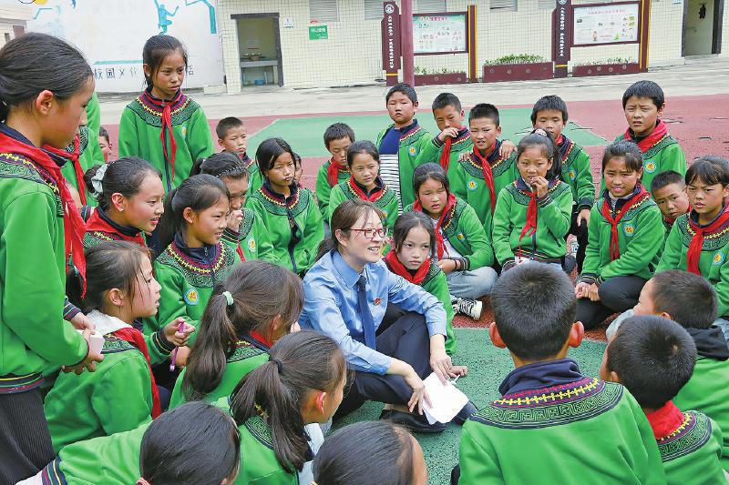 针对石棉县多民族聚居的特点,团队还组建“汉+彝”“汉+藏”双语法治宣讲队,以图文手册、播放视频、现场互动、以案释法等形式开展少数民族未成年人法治教育、家庭教育和民族团结教育。宣讲队定期与少数民族学生较多的学校沟通联系,根据收集的信息定制授课计划和课件。近年来,双语法治宣讲队为学生宣讲宪法、预防性侵等法律知识20余场次。