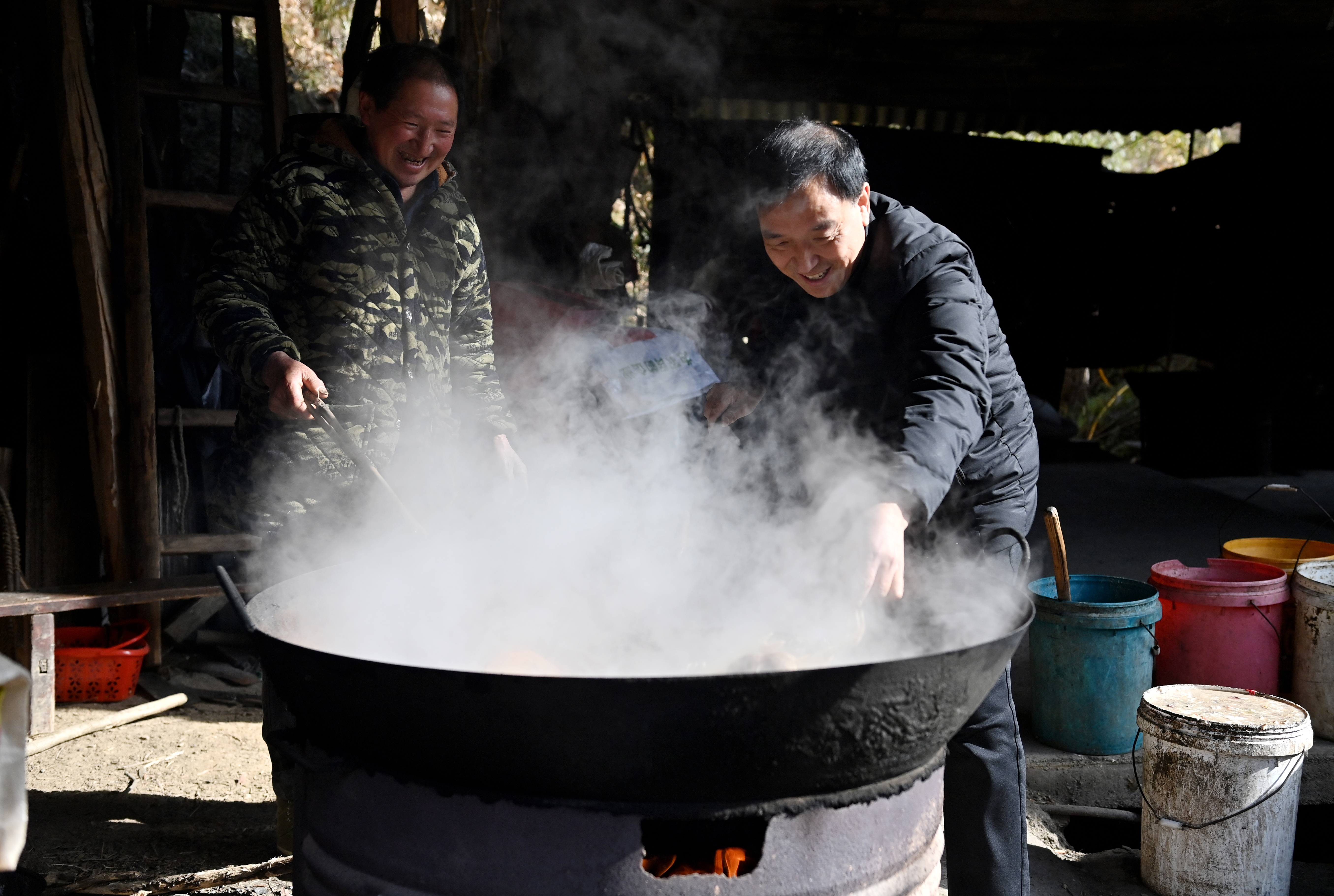 10日早晨,随着春节的脚步日益临近,万源市白沙镇水鼓坝村养殖户田先卫家的年味格外浓厚。万源市委政法委帮扶工作队的队员们正与村民一道,抓牛、杀牛、分割、打包……忙得热火朝天。阳光洒在大家的脸上,烟火气中交织着收获的喜悦与新春的期盼。