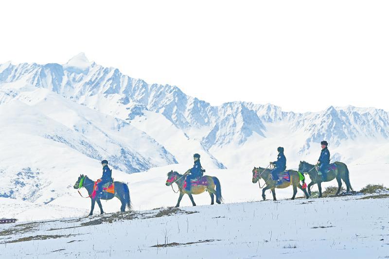 “雷锋所长”刘鹏带队组成的马背巡逻队在辖区巡逻 四川法治报全媒体记者 张磊 摄