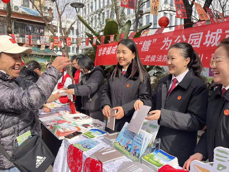 1月26日,腊八节,成都市武侯区法院联合玉林街道玉林东路社区开展第一期“冬游四川·司法同行”系列活动,聚焦文旅消费与生态环境保护热点问题,通过法治宣传形式将实用法律知识送到群众身边。