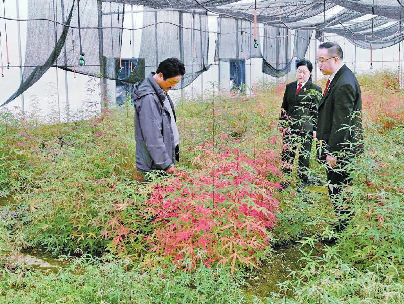 法官实地查看五小叶槭人工繁育情况 省法院供图