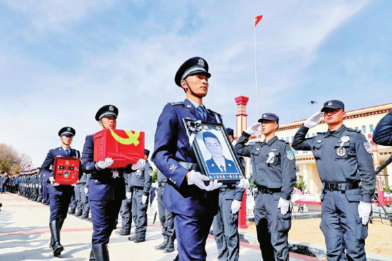 3月20日上午,额旺格拉同志追悼会在红原县广场隆重举行 阿坝公安供图