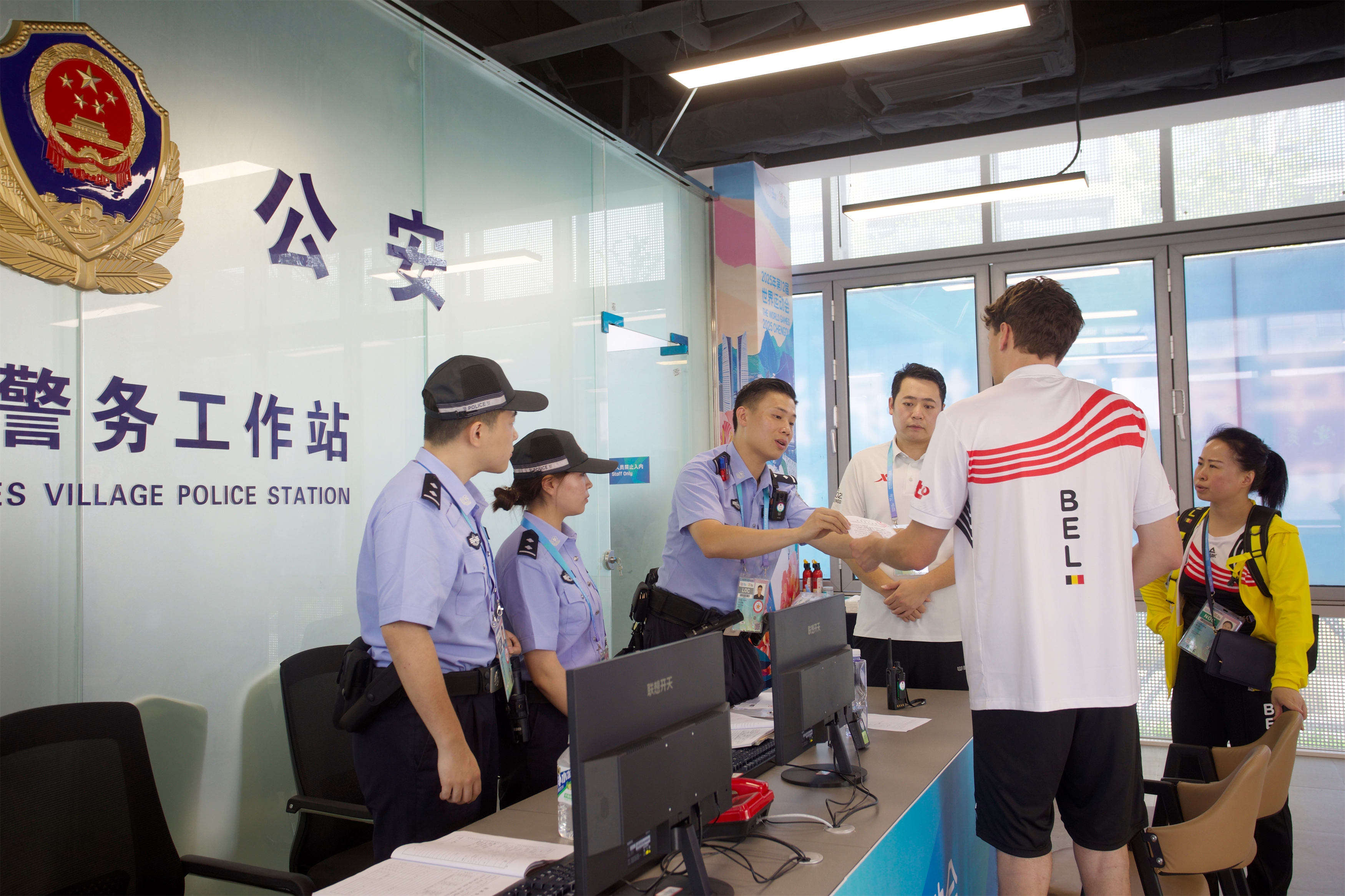 按照原定流程,参赛人员需要到派出所开具报失证明,然后带着证明前往出入境管理部门、大使馆办理证件。在世运村内,参赛人员只需到村内的警务站开具报失证明,而后坐等大使馆通知领取护照,省时省力。