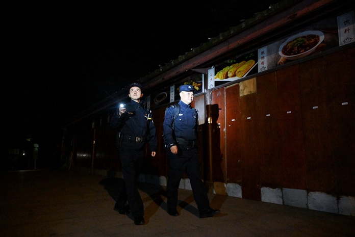 9月4日晚上10点,乐山市公安局峨眉山风景名胜区分局金顶派出所教导员欧洋与辅警徐仕平,在山脚踏上通往山顶的青石步道,开启两人的夜巡执勤工作。“警察的手电光,就是游客的‘安心灯’。”欧洋对记者说。