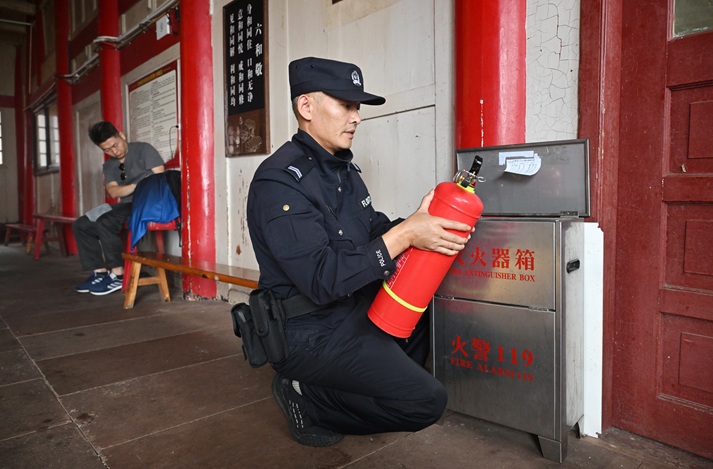 伍明海检查重点文物保护单位内的消防设施