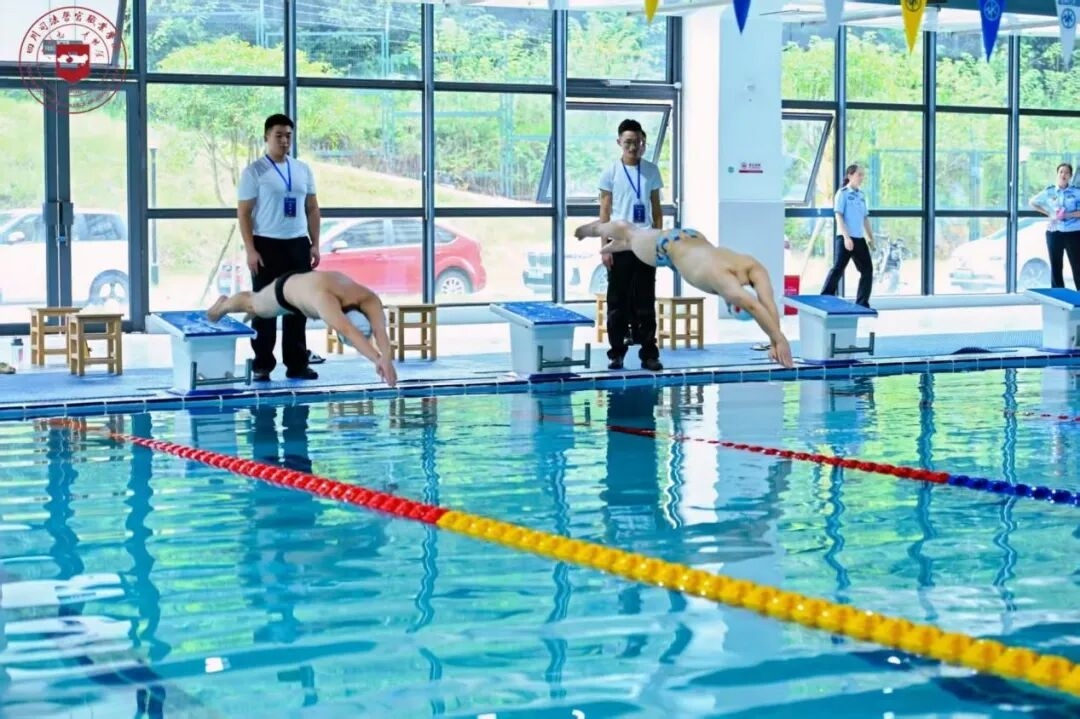9月10日,四川司法警官职业学院2025年教师节系列庆祝活动之首届“强警杯”教职工游泳比赛,弘扬尊师重教的优良传统,丰富教职工文体生活,营造健康向上、团结奋进的校园文化氛围。来自学院各分工会的 50 余名教职工齐聚一堂,在碧波泳池中展开激烈角逐,以独特方式庆祝属于自己的节日,用拼搏与活力诠释新时代人民教师的精神风貌。