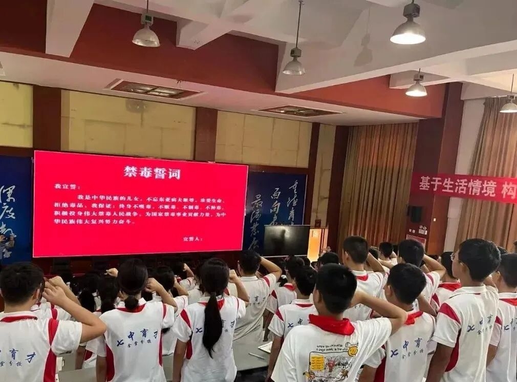省成都第二强戒所民警走进七中育才金堂分校,结合中学生的认知特点,通过多媒体课件和一线工作中积累的大量真实案例,系统讲解了毒品的危害与防范常识,设计有奖竞答、禁毒宣誓等环节,让师生们在轻松氛围中加深记忆,增强了防范麻醉药品和精神药品滥用的意识。