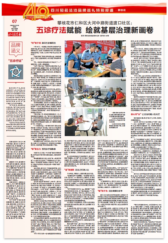 基层安则天下安。在社会治理进程中,法治与群众心治的重要性日益凸显。攀枝花市仁和区大河中路街道渡口社区面对“村改居”后矛盾频发的状况,创新打造“未病先治”的“五诊疗法”法治品牌,通过党建引领下的“问、联、宣、服、治”,将矛盾消于未发或初始阶段。