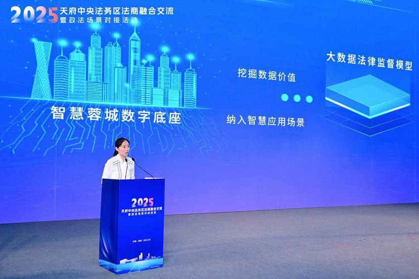 会上,天府新区总部商务局介绍天府中央法务区建设情况。当前,天府中央法务区“以商促法、以商引法”,多元化法务资源聚集,吸引了超400家法务泛法务机构、超10家涉外法务机构,举办了超60场法商融合活动。