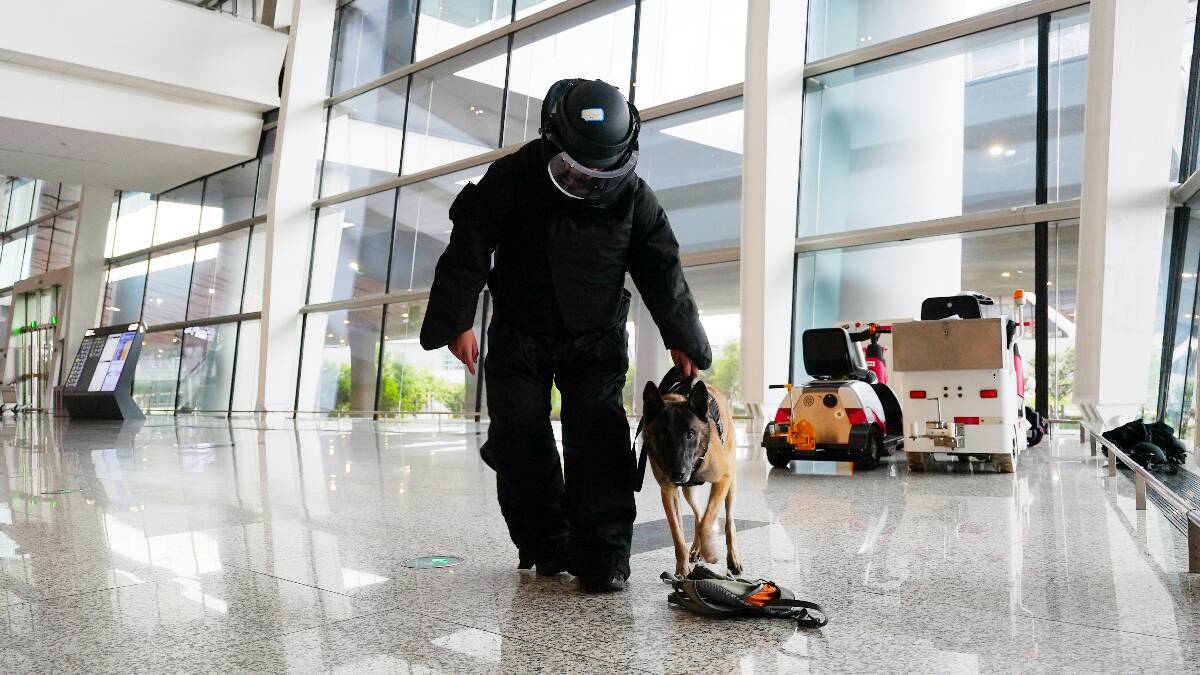 “去年12月23日晚上9点左右,指挥中心发出指令,机场货站区发现可疑包裹。”回忆起去年的一次任务,罗鹏霄仍记忆深刻。接到指令的第一时间,罗鹏霄和警犬“炎晖”迅速赶到现场,“防爆服特别沉,抬手都要用足力气。”