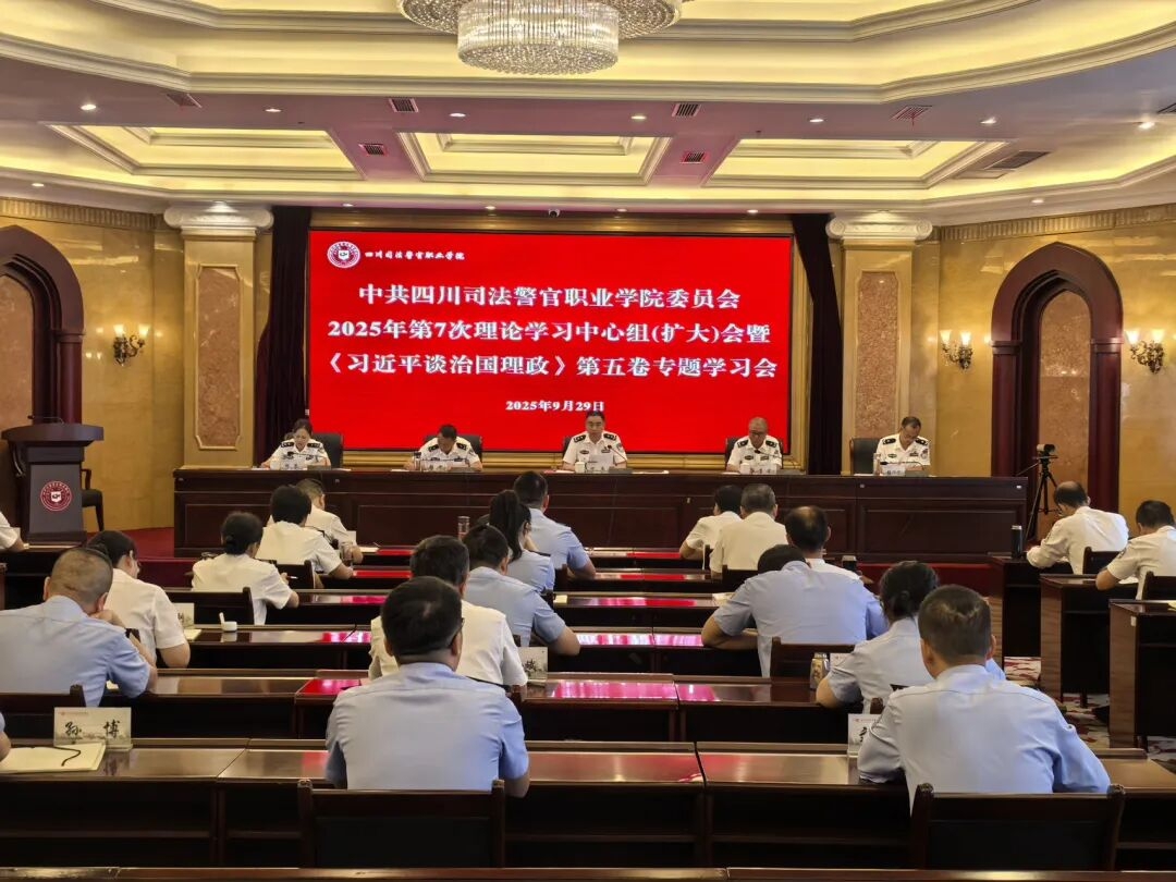 9月29日,四川司法警官职业学院党委理论学习中心组召开2025年第7次会议暨《习近平谈治国理政》第五卷专题学习会,集中学习《习近平谈治国理政》第五卷。学院党委书记田亮主持会议并谈认识体会。
