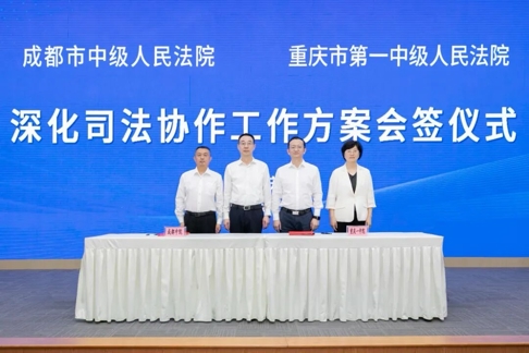 易晓东表示,两院此次聚焦重点领域共商共建,是为大局服务、为人民司法的“双向奔赴”,希望以更加广泛深入、务实有效的司法协作,应对司法审判领域中的新问题新挑战,为成渝地区双城经济圈建设提供更加坚强有力的司法服务和保障。