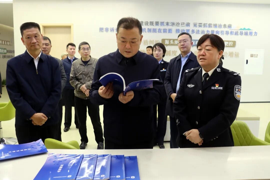 潘奇峰一行来到德阳市旌阳区综治中心,实地察看综治中心功能区域,详细了解省女子强戒所社区戒毒(康复)指导工作旌阳区服务点入驻综治中心后的工作情况。深入省女子强戒所基层大队、戒毒医疗中心及教育矫治中心等区域开展实地调研,详细询问安全隐患排查整治、职业技能培训、中医药戒毒和教育矫治等工作,与一线民警亲切交流,对大家的辛勤付出和积极贡献表示感谢,对场所整体工作给予充分肯定。