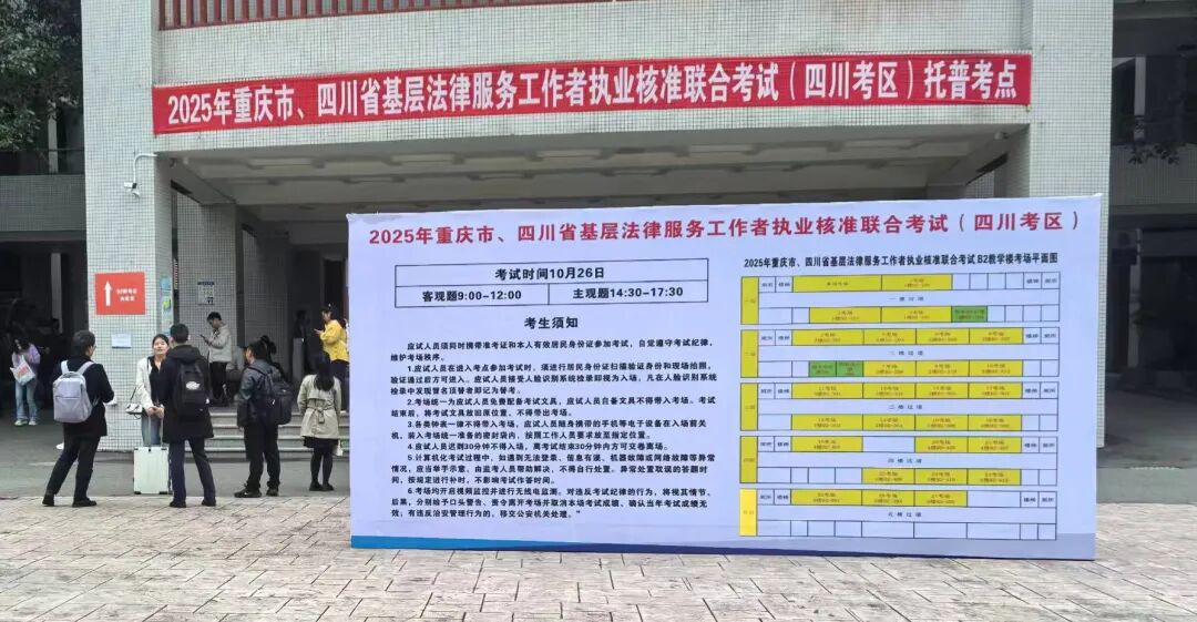 10月26日,2025年重庆市、四川省基层法律服务工作者执业核准联合考试(以下简称“川渝联考”)顺利结束。四川考区设置1个考点、27个考场,1254名考生报名参加考试。