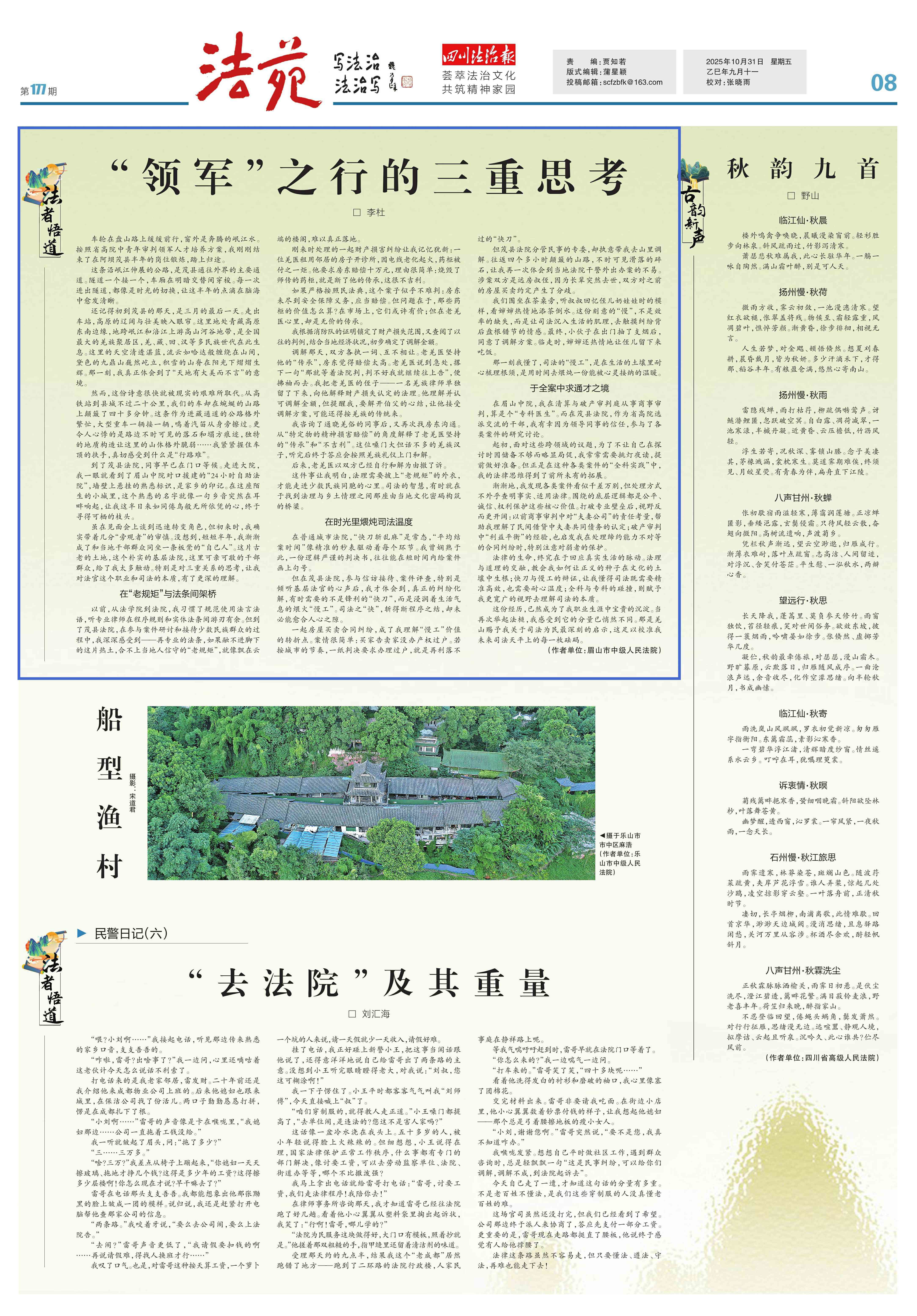 法律的生命,终究在于回应真实生活的脉动。法理与道理的交融,教会我如何让正义的种子在文化的土壤中生根;快刀与慢工的辩证,让我懂得司法既需要精准高效,也需要耐心温度;全科与专科的碰撞,则赋予我更宽广的视野去理解司法的本质。