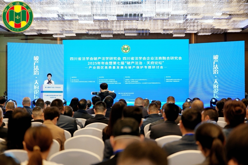 近日,在四川省法学会的指导下,省法学会破产法学研究会、省法学会企业法商融合研究会2025年年会暨第七届“破产法治•天府论坛”——产业园区高质量发展与破产保护专题研讨会在天府中央法务区成功举办。本次研讨会汇聚了多位行业顶尖特邀专家,省内外党政机关,司法机关,科研院校,行业协会,企业代表,以及两研究会理事等三百余名嘉宾,共同探讨法商融合护航经济高质量发展的路径与创新。