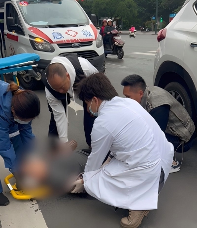 救援紧张进行的同时,现场已有热心市民陆续拨通了120和110电话,为生命救援开辟了绿色通道。很快,120救护车和110警车赶到现场,老人被及时送医救治。