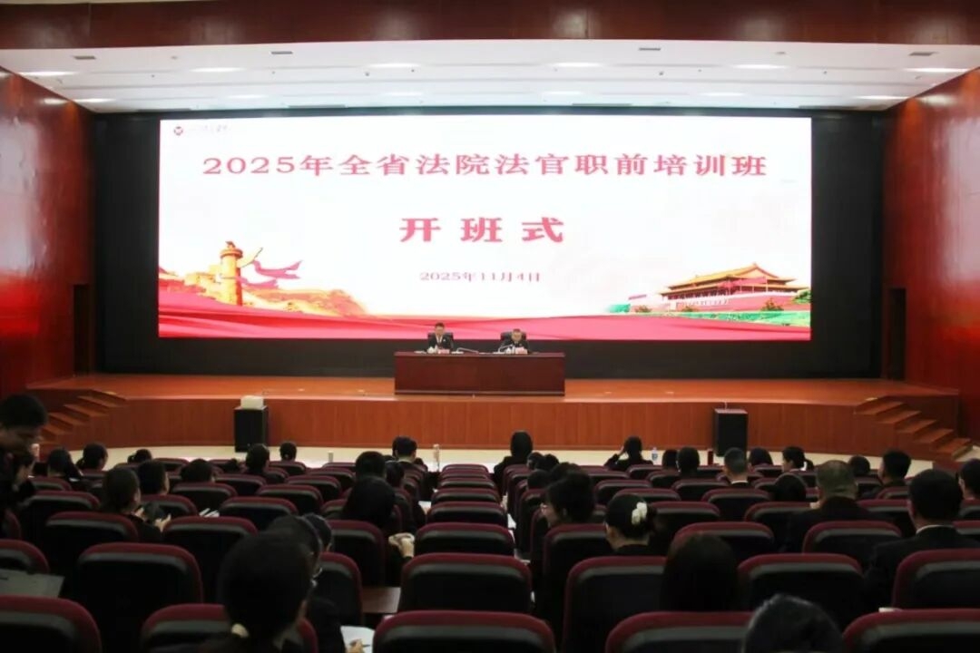 11月4日,2025年全省法院法官职前培训在四川法官学院举行开班仪式。省高院党组副书记、常务副院长秦海出席作动员讲话并辅导授课。省高院一级巡视员李显清主持。全省法院第一期200余名拟入额候选对象参加开班式。